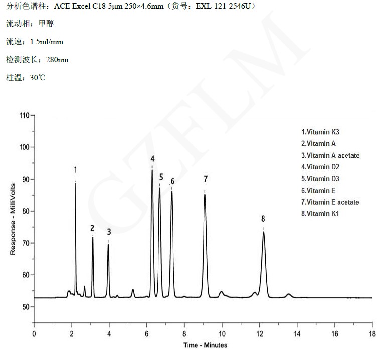 維生素包括脂溶性和水溶性維生素,由于在色譜上表現(xiàn)差異很大,很多會(huì)選擇不同的色譜柱來(lái)分析。