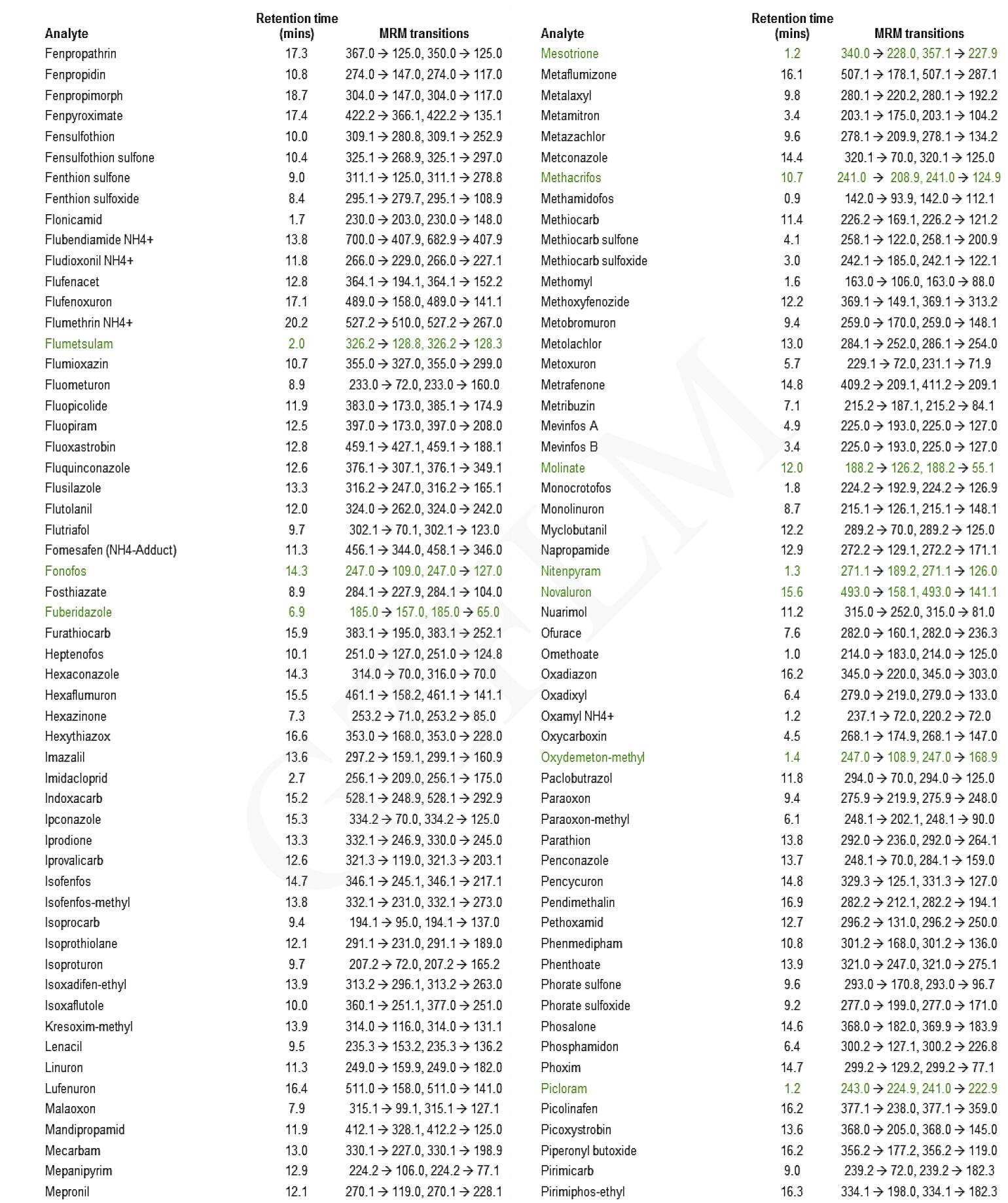 300 種農藥的 LC-MS-MS 方法