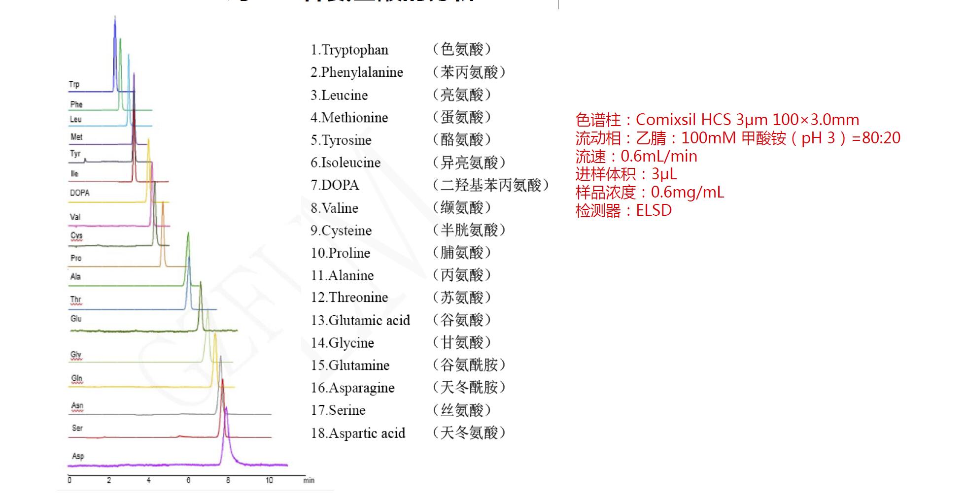 A.Comixsil HCS 對18種氨基酸的分析-ELSD