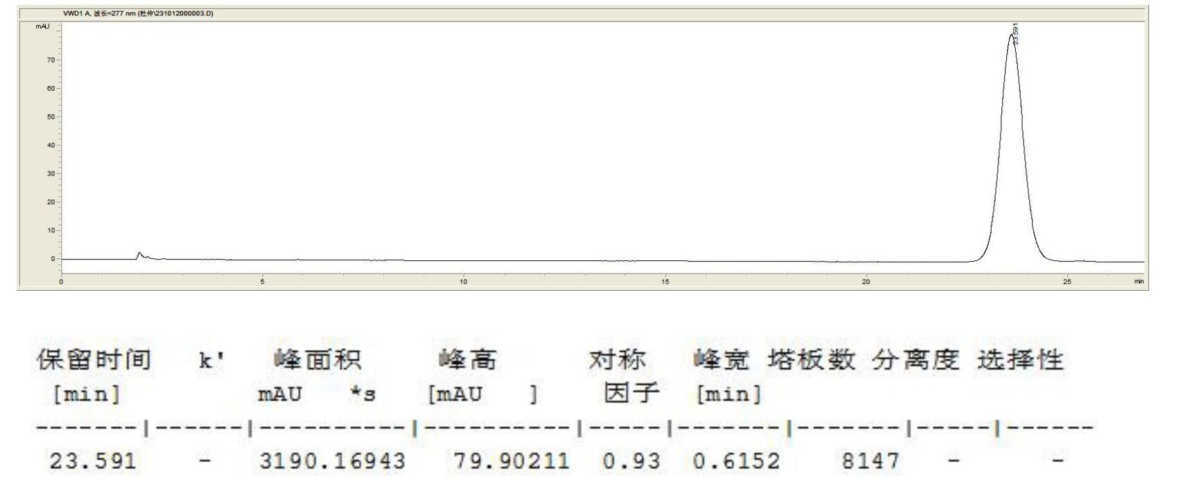 檢測器:UV 277nm