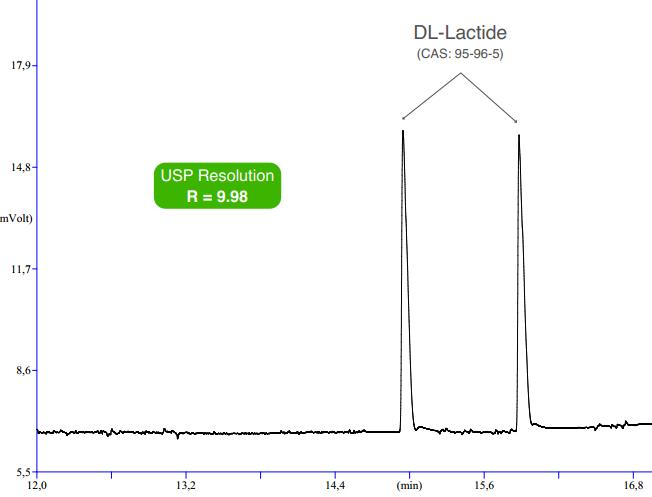 四,丙交酯的手性對映體氣相手性分析(GC+FID) 色譜柱:FBX-DEX DET Beta-0.25mm,0.25um,15m (貨號:BDET-025-025-15)