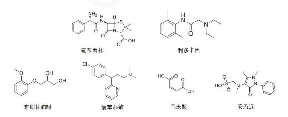 App ID: FLM-C240008 Comixsil RP-AX 同時(shí)分析鎮(zhèn)痛類藥物制劑安乃近、利多卡因、愈創(chuàng)甘油醚、馬來酸氯苯那敏、氨芐西林 色譜柱: Comixsil RP-AX 3μm 150*4.6mm(貨號(hào):FMF-AXR3-EONU) 流動(dòng)相: 時(shí)間 水 乙腈 200mM 甲酸銨(pH 3.4) 0 55 10 35 10 25 40 35 10.01 55 10 35 20 55 10 35 流速:1.0 mL/min 檢測(cè)波長(zhǎng):255nm 柱溫:25℃ 樣品濃度:N/A 進(jìn)樣量:N/A 結(jié)構(gòu)式: