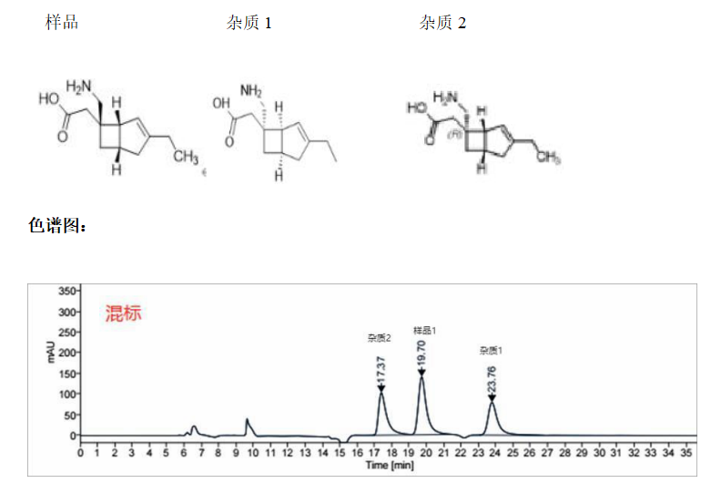 1. **選擇合適的手性柱**:根據(jù)米洛巴林的化學結(jié)構(gòu)和性質(zhì),選擇合適的菲羅門手性柱進行拆分。這可能需要考慮手性柱的固定相類型、粒徑、柱長等因素。 2. **優(yōu)化色譜條件**:通過調(diào)整流動相組成、流速、溫度等色譜條件,優(yōu)化米洛巴林的手性拆分效果。這可能需要進行多次實驗和條件優(yōu)化。 3. **進樣與分析**:將米洛巴林的樣品注入色譜系統(tǒng),通過手性柱進行分離。記錄和分析色譜圖,確定各對映體的保留時間和峰面積等參數(shù)。 4. **結(jié)果驗證**:通過對比標準品或采用其他方法進行驗證,確認拆分結(jié)果的準確性和可靠性。