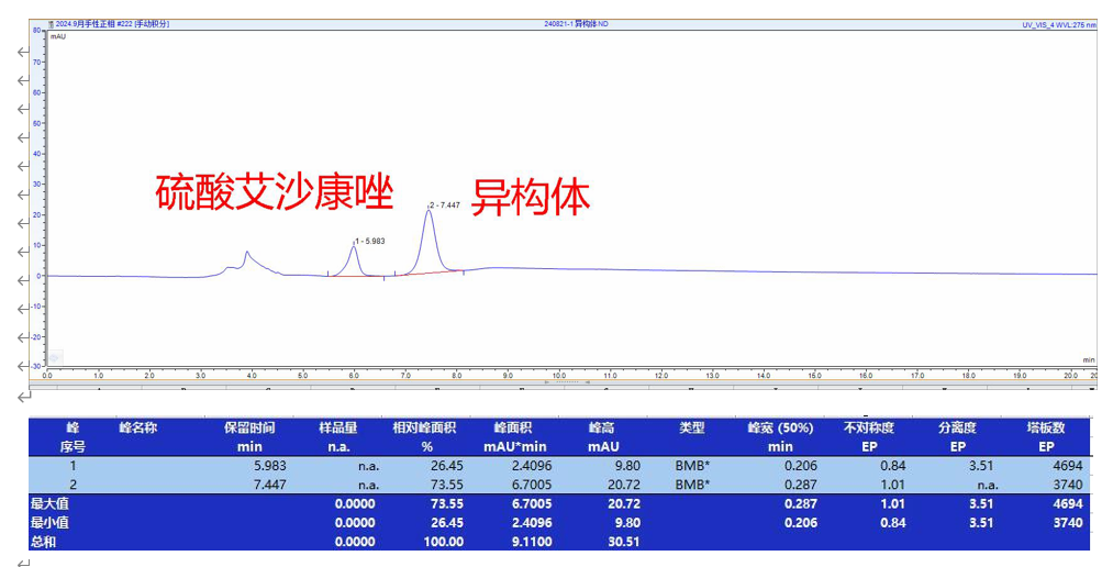 使用菲羅門手性柱進行硫酸艾沙康唑及其對映異構體的手性拆分時,通常包括以下步驟:
