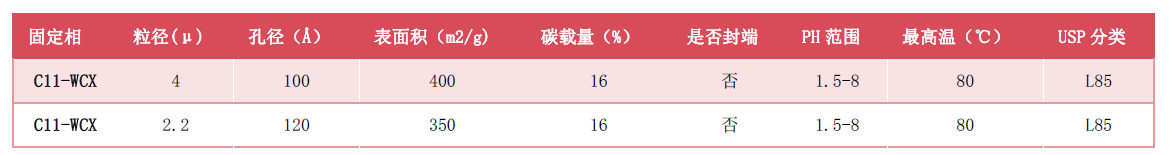 - DreamHsil C11-WCX 色譜柱 C11-WCX具有獨特的選擇性。采用獨特鍵合技術,將直鏈十一碳酸直接獨立的雙位點鍵合于Si-H 鍵上直接形成Si-C鍵的C11-WCX鍵合相。