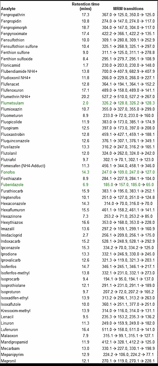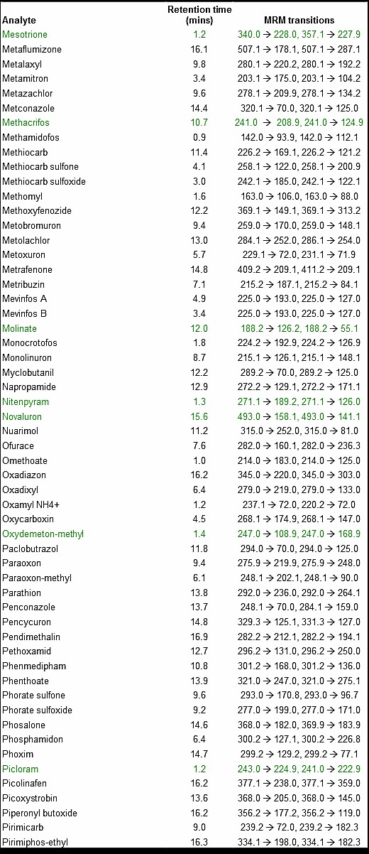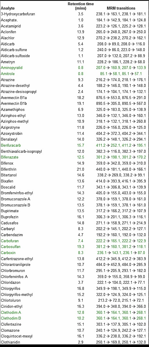 300種農(nóng)藥的LC-MS-MS方法