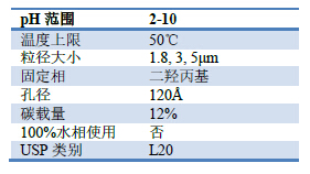 - 二羥丙基鍵合相為親水相互作用(HILIC)色譜柱,可分離那些在反相色譜柱中因保留較弱而難以分離的強(qiáng)極性化合物