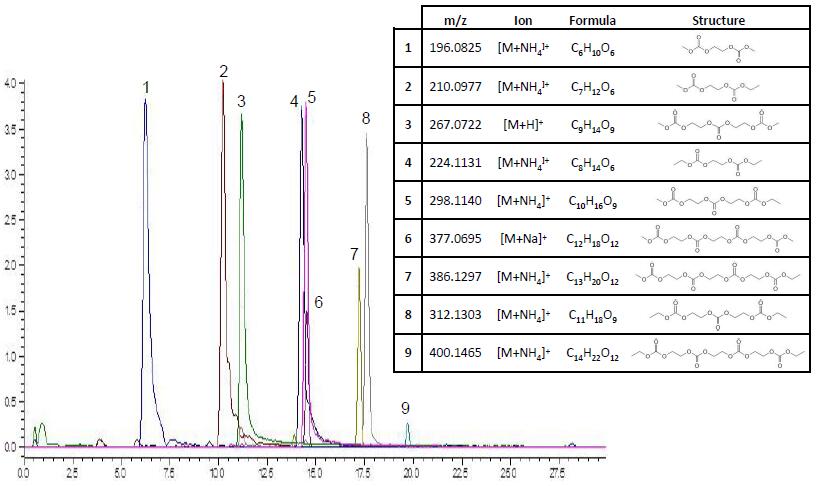 Oligocarbonates in Lithium Ion Battery Electrolyte by LC-IT-TOF-MS