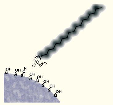 圖9. 通過利用有機氯硅烷將疏水性配體化學鍵合到硅膠表面形成了疏水界面。