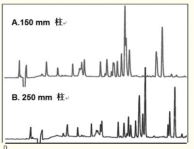 柱長度。小分子與硅膠粒子表面相互作用越多,分辨率就越高;采用長柱比短柱的分辨率高。